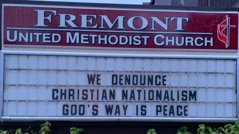 At Fremont, following January 6, we changed our reader-board (see photo above) to make it clear that our intentions as a faith community will line up with God’s way of peace in Jesus, who “though he was in the form of God did not regard equality with God as something to be grasped at, but emptied himself taking the form of a servant becoming obedient to death, even death on a cross (Philippians 2).” There can be no blurring of lines in these days. Our allegiance is to God and to God’s way of humility and peace. If you are interested in learning more about the rise of Christian Nationalism, I would recommend Katherine Stewart’s book entitled, The Power Worshippers: Inside the Dangerous Rise of Religious Nationalism. Also, our nearby sister Episcopal Church, Grace Memorial in the Lloyd District, is currently hosting a Forum on the rise of Christian Nationalism. The forum is lead by Rev. Jeanne Kaliszewski, the Curate at Grace Memorial. Here is a link to session 1: https://www.youtube.com/watch? v=Era8h7_mSjo&list=PLtV_ CHZ0VsQdMjcae2_ZTQmF8o46Juzwi& index=1&t=189s